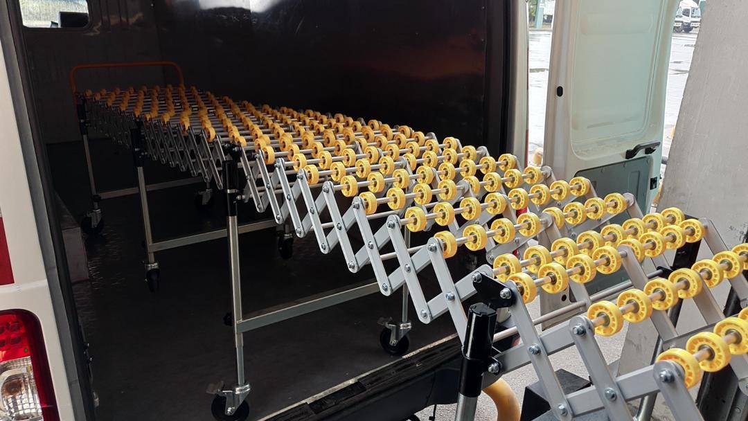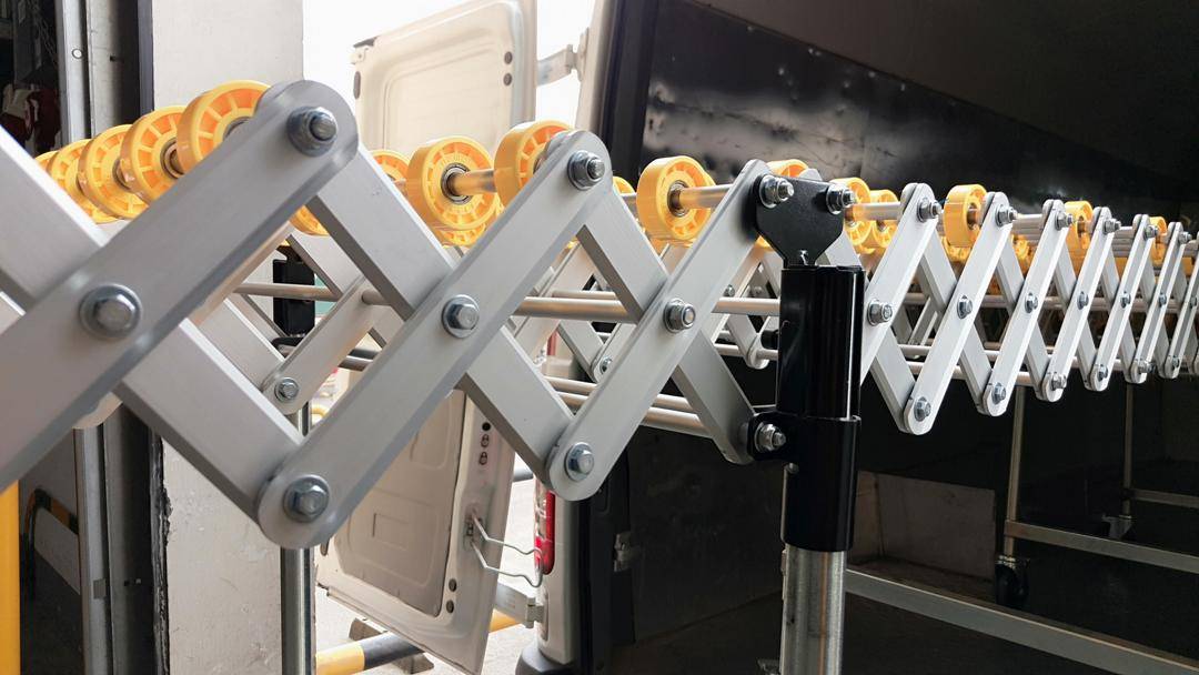 ใช้สำหรับการลำเลียงสินค้าจากWarehouse เพื่อส่งเข้าตู้คอนเทรนเนอร์ หรือรถบรรทุก ได้อย่างสะดวกสบาย โดยผู้ขนไม่จำเป็นต้องคอยเดินไปหยิบสินค้าทีละชิ้นจากพาเลทเพื่อนำไปจัดวางในตู้คอนเทรนเนอร์หรือรถบรรทุก เพราะFlexible Roller Conveyor นี้สามารถลำเลียงสินค้าของท่านไปสู่จุดหมายที่ท่านต้องการจัดส่งได้โดยใช้ระบบGravity หรือ ระบบAuto ตามต้องการ ในทางกลับกัน เราก็ยังสามารถลำเลียงสินค้าออกจากตู้คอนเทรนเนอร์หรือรถบรรทุกเพื่อนำเข้าเก็บในคลังสินค้าก็ได้เช่นกันครับ